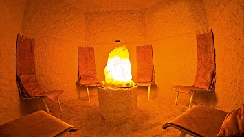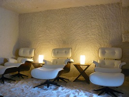 Huoneessa ollaan normaalisti sisävaatteet päällä istuen rennosti aurinkotuoleilla. Iho-ongelmaansa hoitavat asiakkaat pukeutuvat omiin uima-asuihinsa tai suojaviittaan jättäen ihon ongelmakohdan alttiiksi ilmassa leijuville parantaville suolahiukkasille.